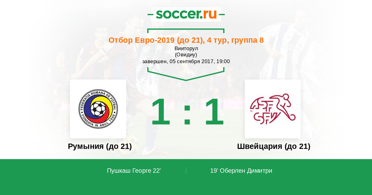 Протокол матча Румыния (до 21) против Швейцария (до 21)