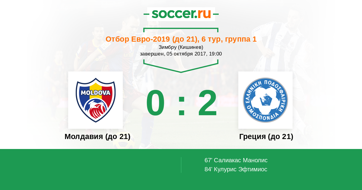 Протокол матча Молдавия (до 21) против Греция (до 21)
