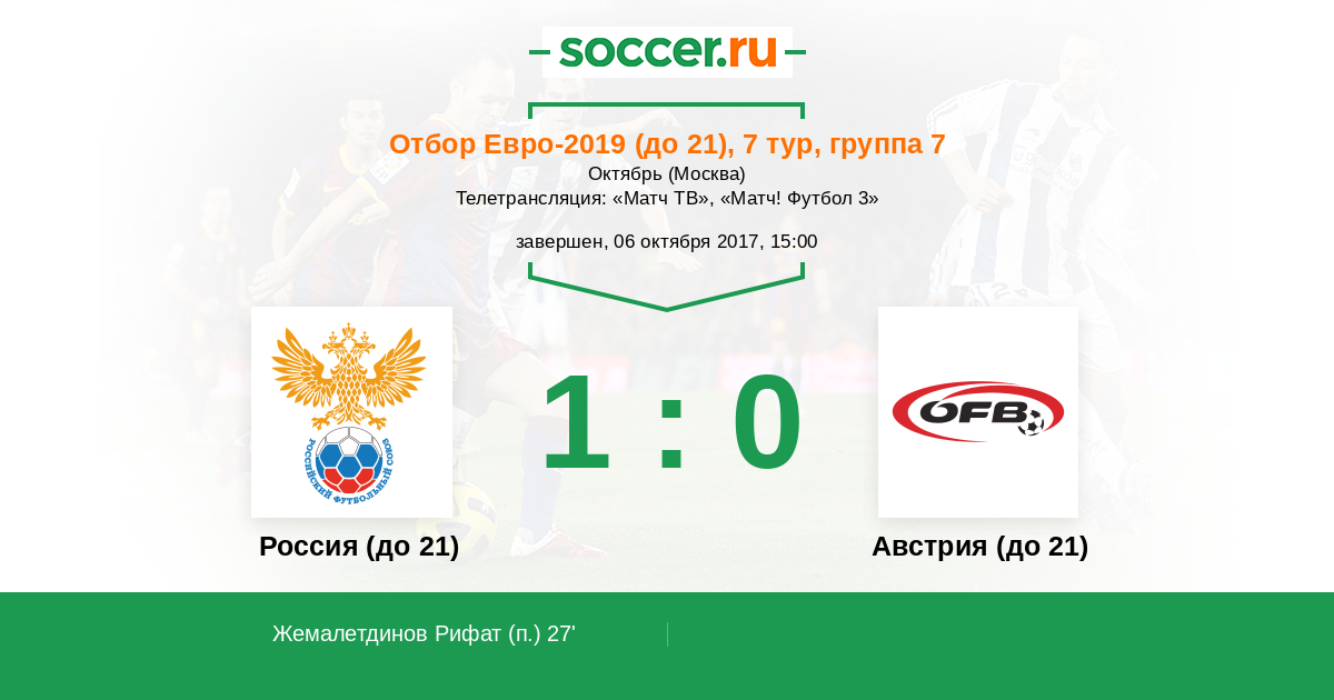 Протокол матча Россия (до 21) против Австрия (до 21)