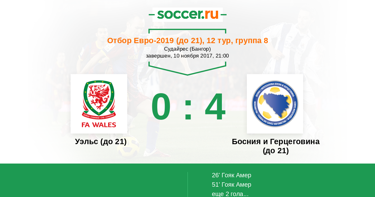 Протокол матча Уэльс (до 21) против Босния и Герцеговина (до 21)