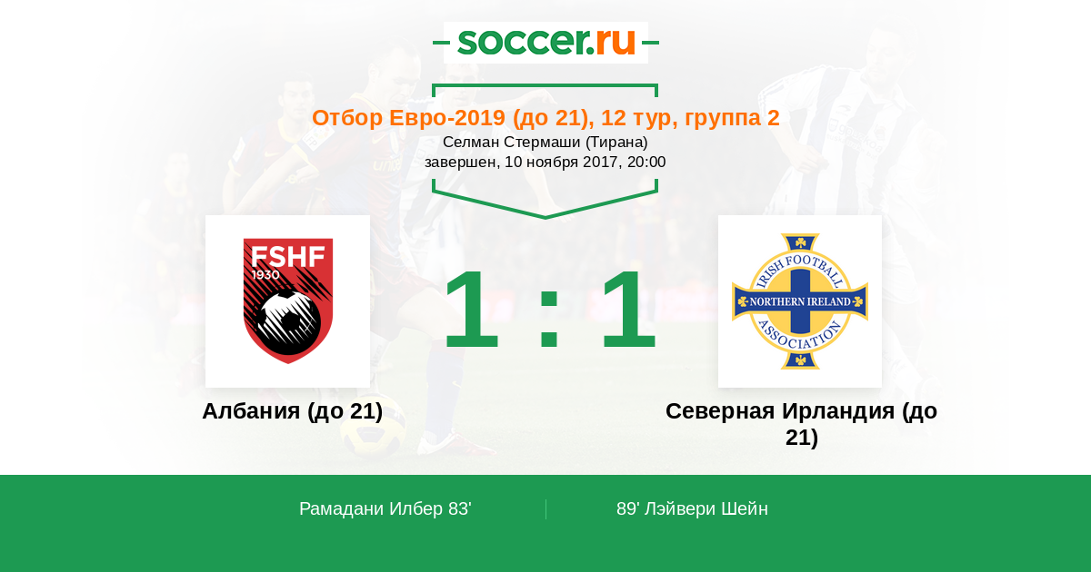 Протокол матча Албания (до 21) против Северная Ирландия (до 21)