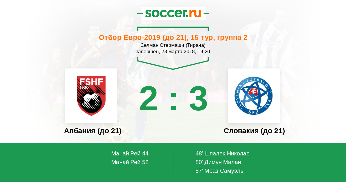 Протокол матча Албания (до 21) против Словакия (до 21)