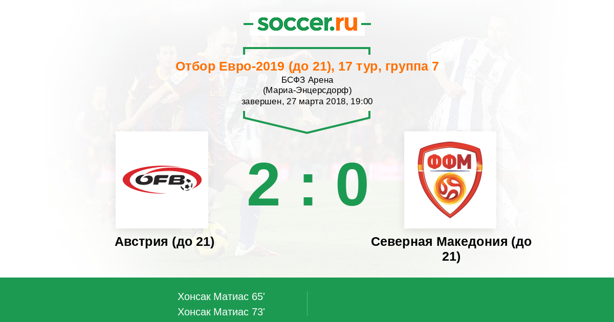 Протокол матча Австрия (до 21) против Северная Македония (до 21)