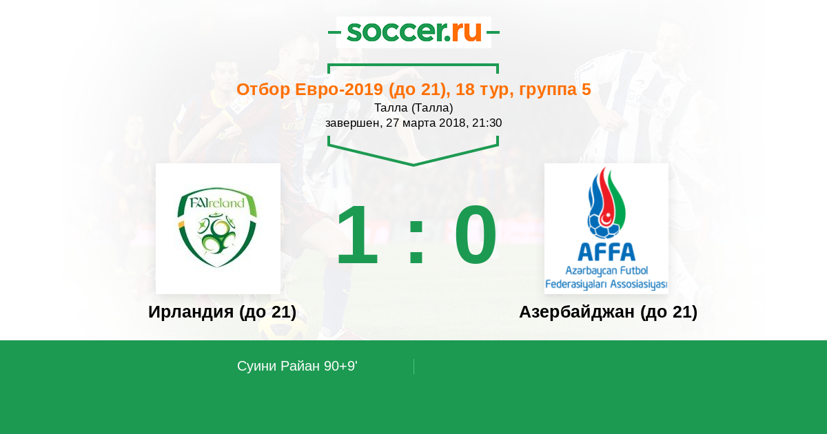 Протокол матча Ирландия (до 21) против Азербайджан (до 21)