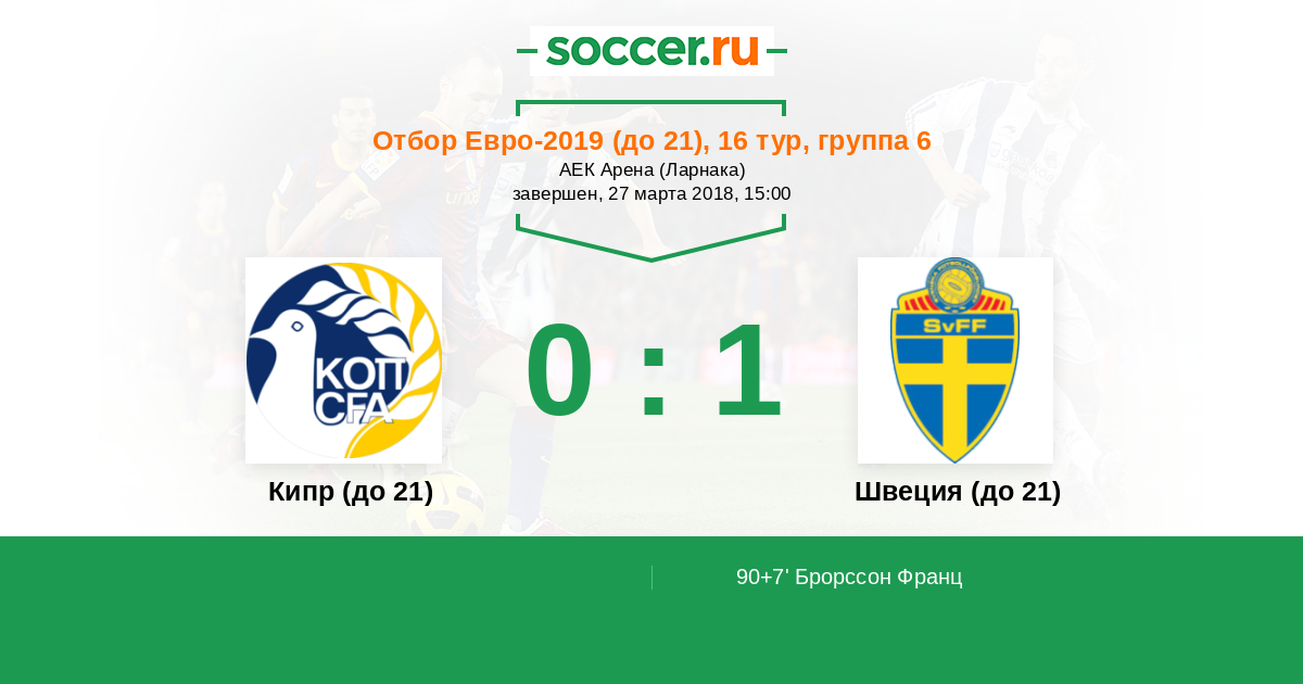 Протокол матча Кипр (до 21) против Швеция (до 21)