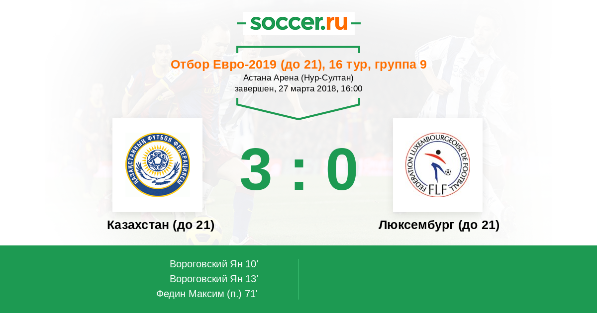 Протокол матча Казахстан (до 21) против Люксембург (до 21)