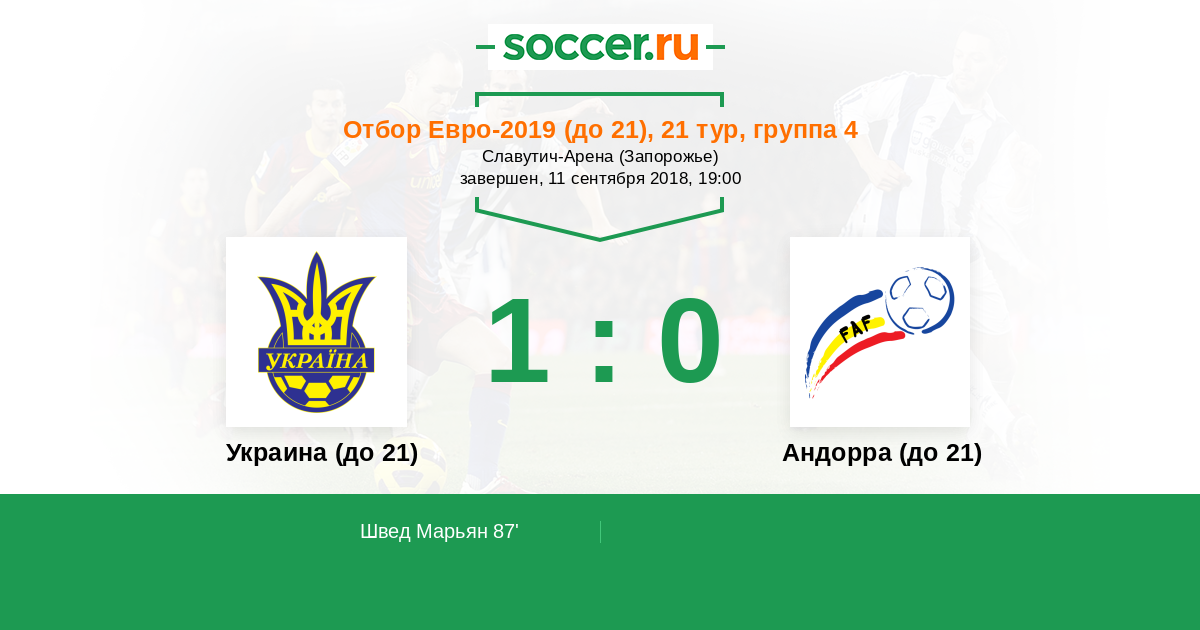 Протокол матча Украина (до 21) против Андорра (до 21)