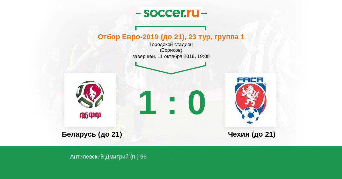 Протокол матча Беларусь (до 21) против Чехия (до 21)