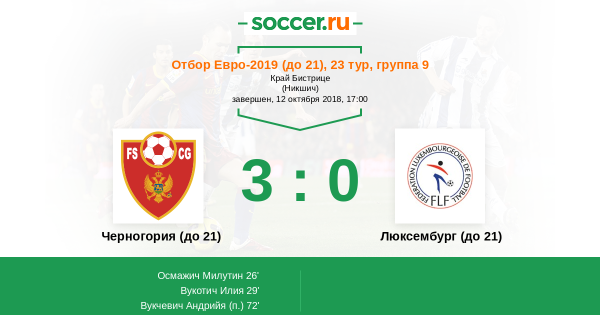 Протокол матча Черногория (до 21) против Люксембург (до 21)