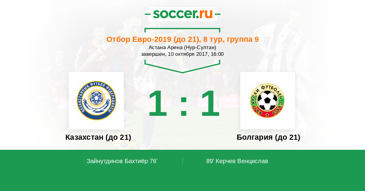 Протокол матча Казахстан (до 21) против Болгария (до 21)