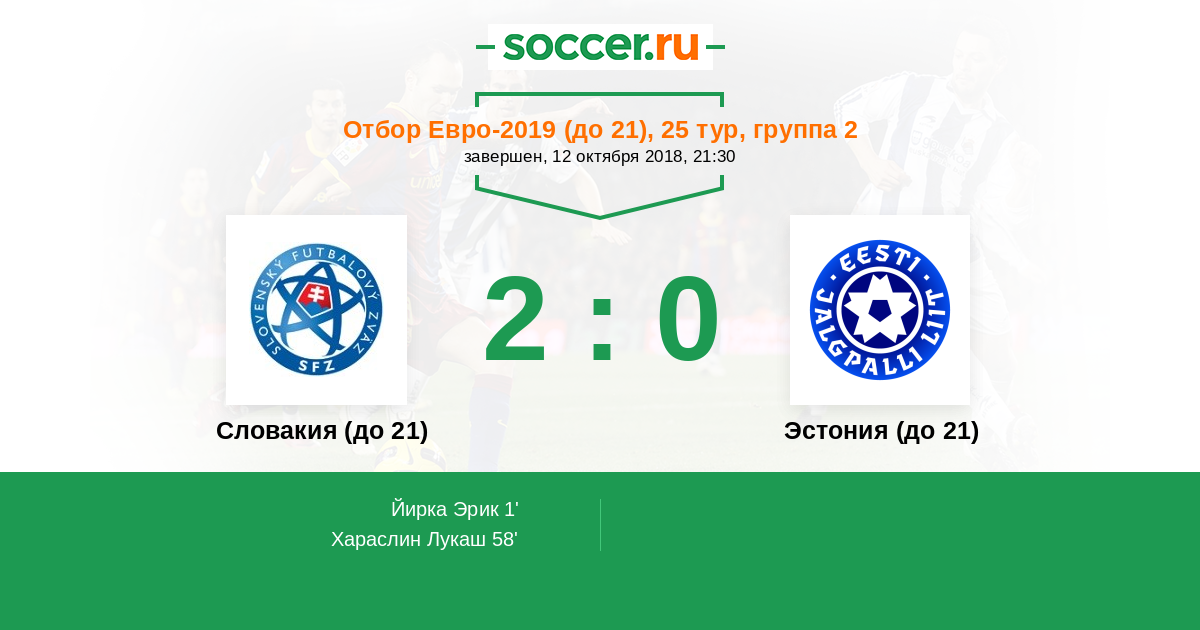 Протокол матча Словакия (до 21) против Эстония (до 21)
