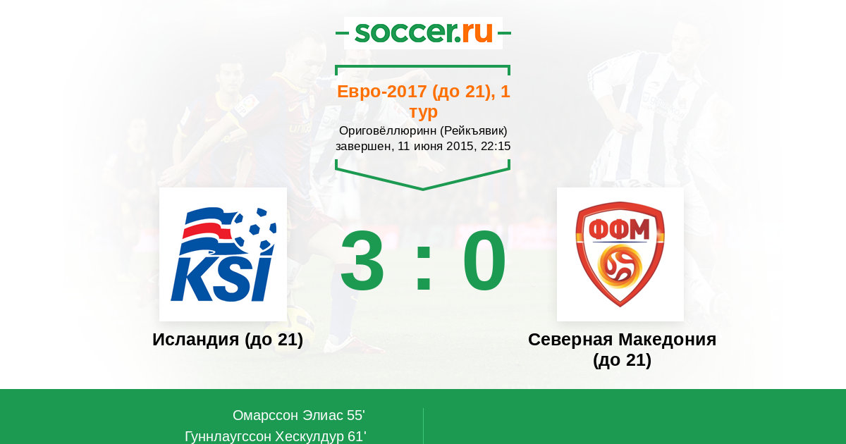 Протокол матча Исландия (до 21) против Северная Македония (до 21)