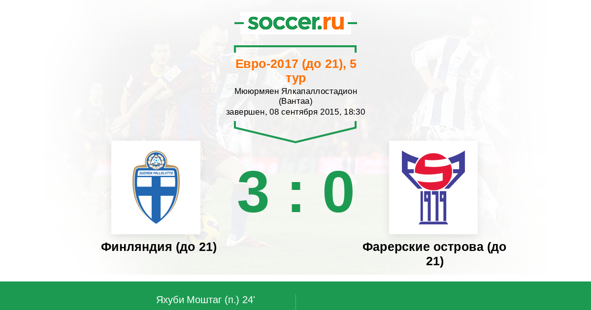Протокол матча Финляндия (до 21) против Фарерские острова (до 21)
