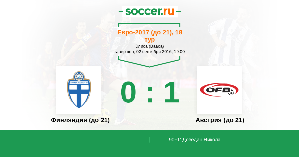 Протокол матча Финляндия (до 21) против Австрия (до 21)