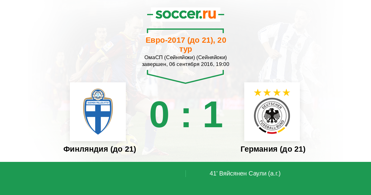 Протокол матча Финляндия (до 21) против Германия (до 21)