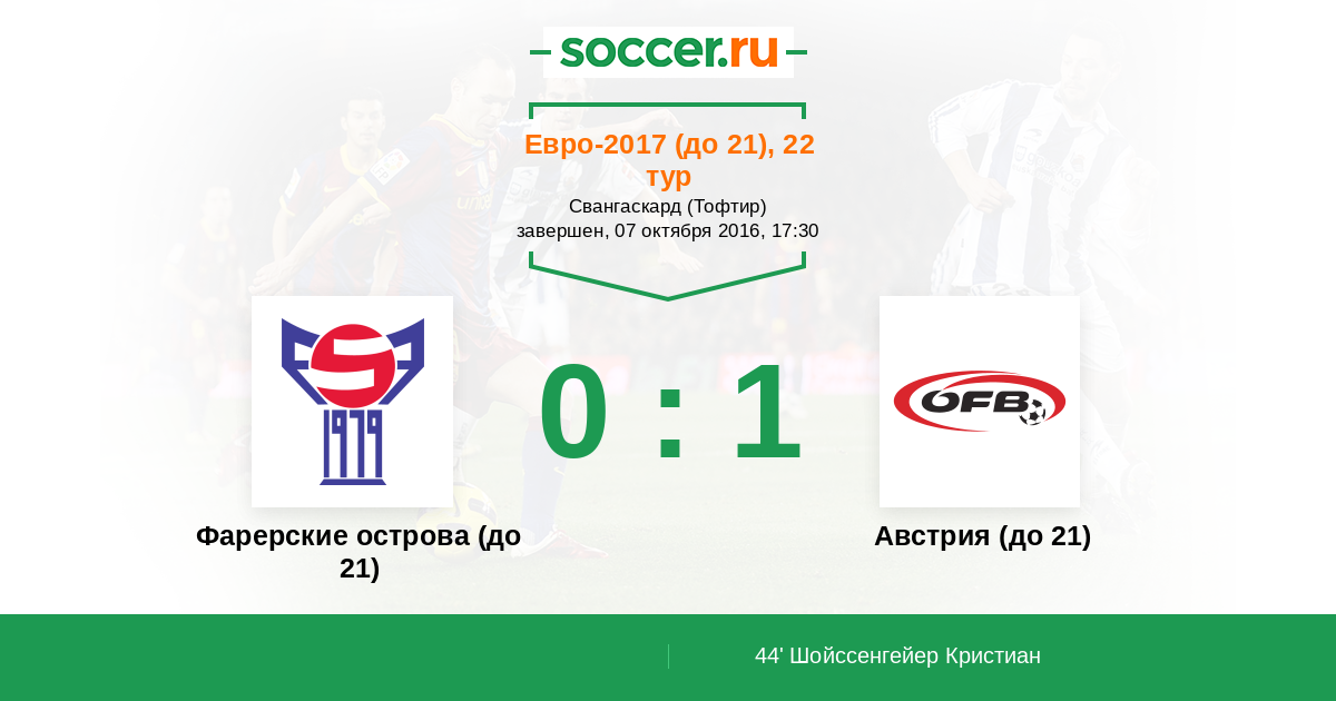 Протокол матча Фарерские острова (до 21) против Австрия (до 21)