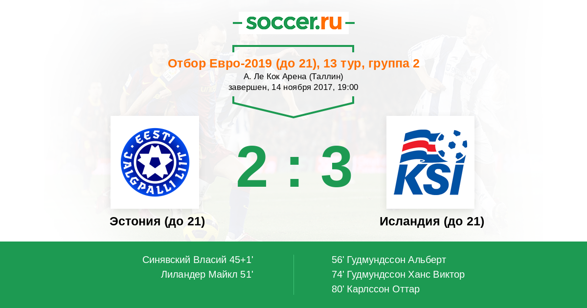 Протокол матча Эстония (до 21) против Исландия (до 21)