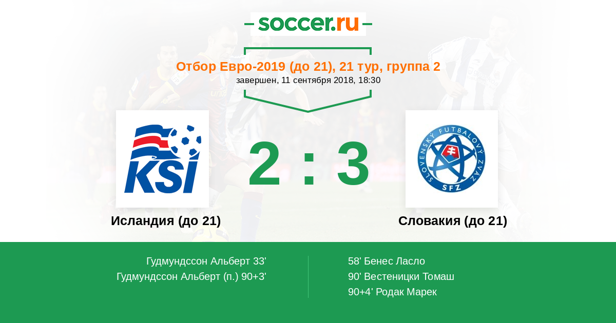 Протокол матча Исландия (до 21) против Словакия (до 21)