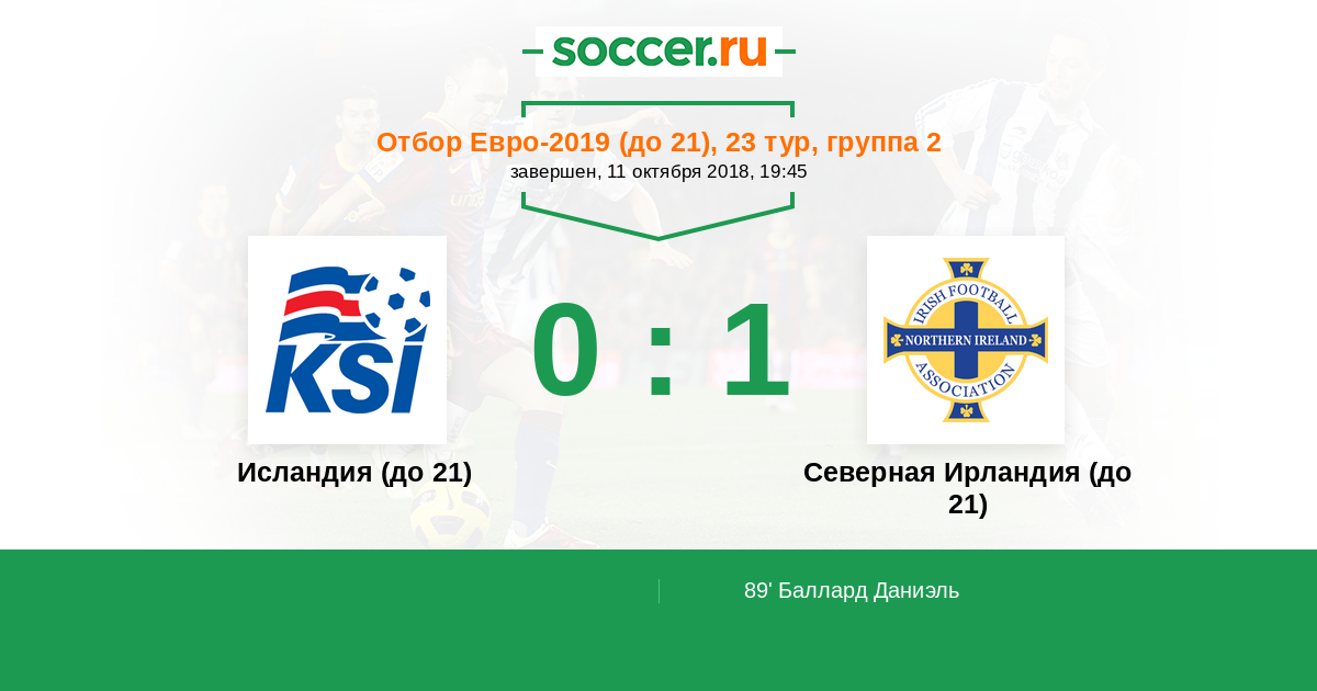 Протокол матча Исландия (до 21) против Северная Ирландия (до 21)