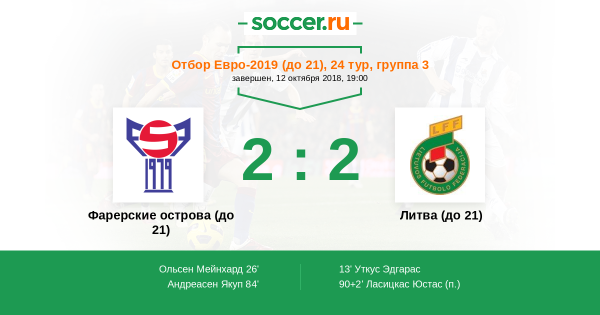 Протокол матча Фарерские острова (до 21) против Литва (до 21)