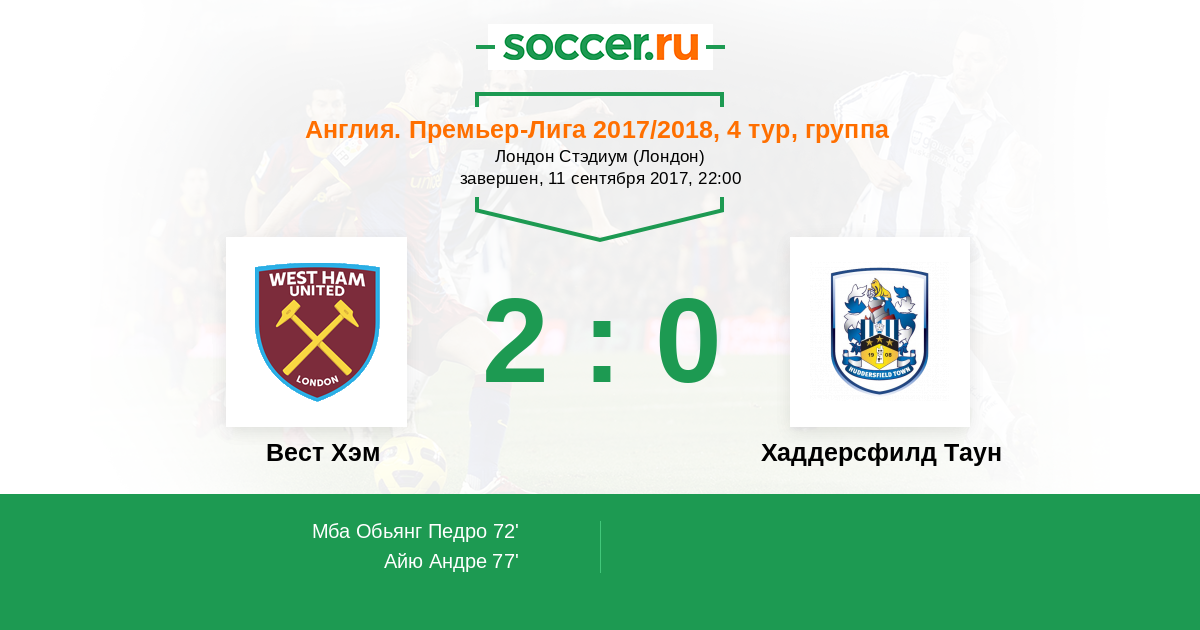 Протокол матча Вест Хэм против Хаддерсфилд Таун