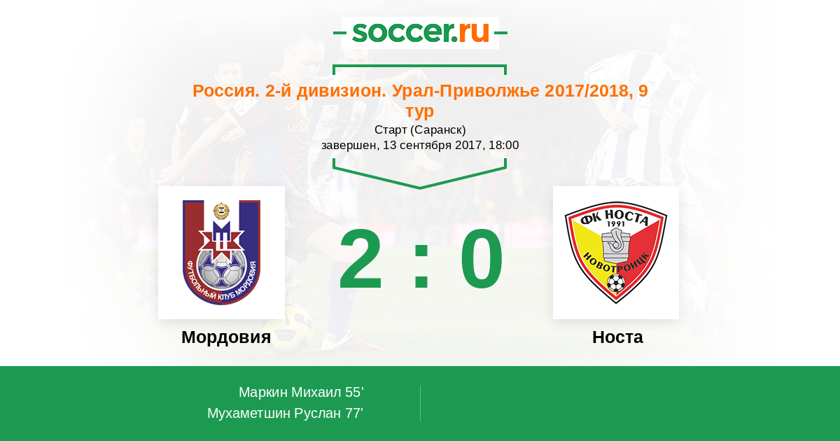 Протокол матча Мордовия против Носта