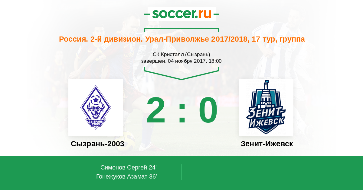 Протокол матча Сызрань-2003 против Зенит-Ижевск