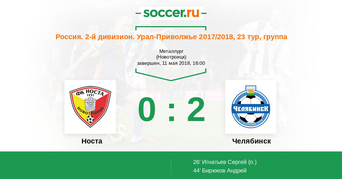 Протокол матча Носта против Челябинск