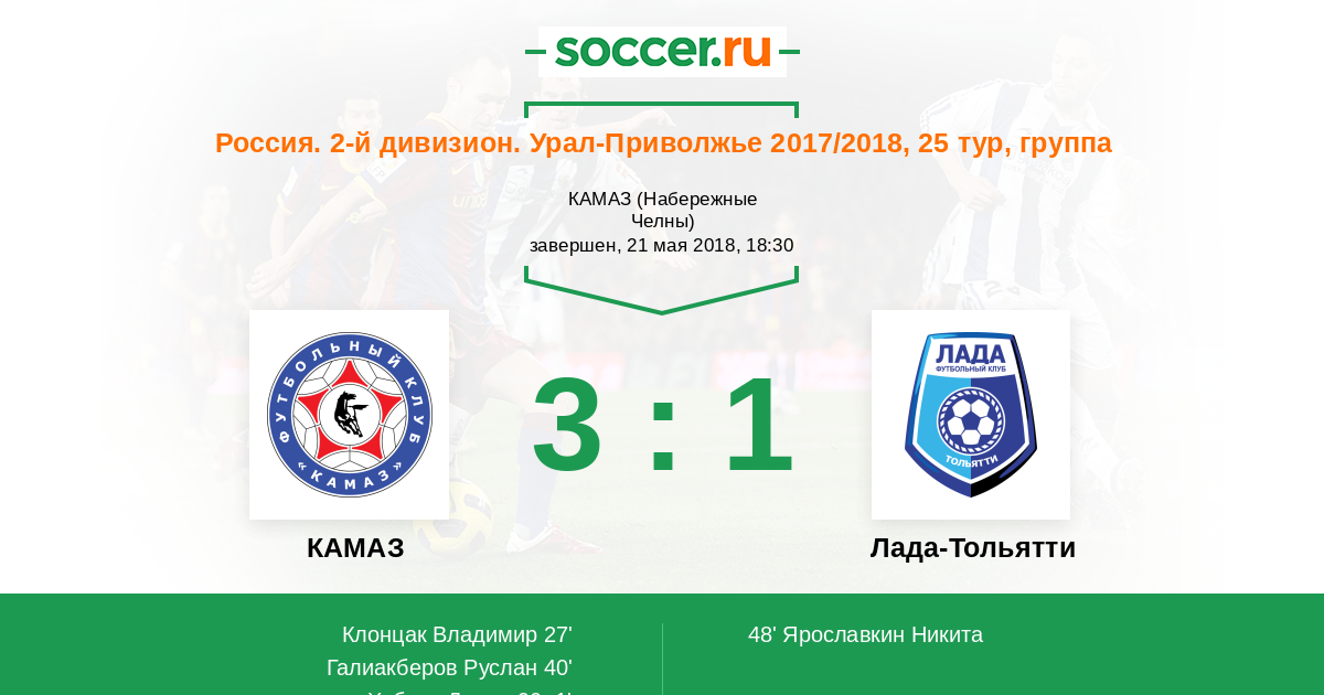 Россия. 2-й дивизион. Урал-Приволжье 2017/2018, 25 тур