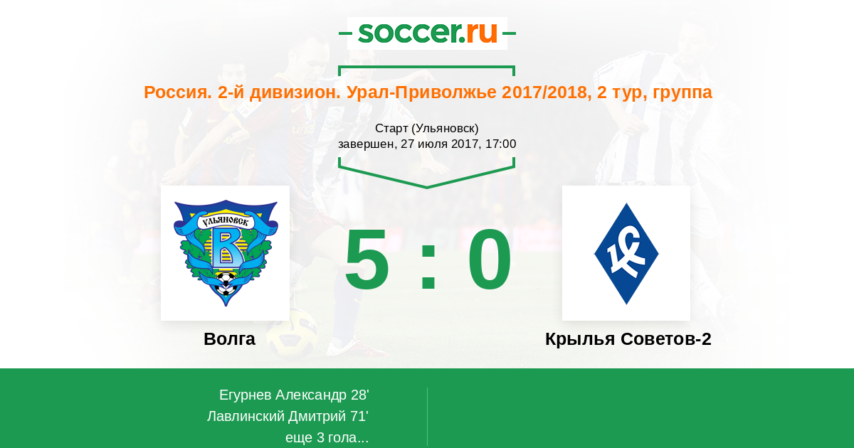 Протокол матча Волга против Крылья Советов-2