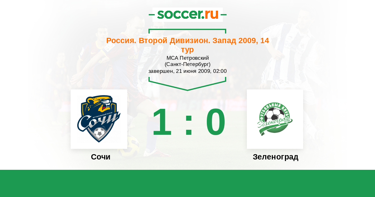 Россия. Вторая лига. Группа 2 03.10.2009 Зеленоград Логотип футбольный клуб Зеленоград (Москва) 0:0 Логотип футбольный клуб Динамо (Сочи) Динамо