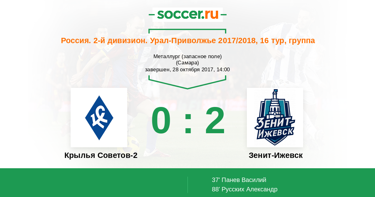 Протокол матча Крылья Советов-2 против Зенит-Ижевск