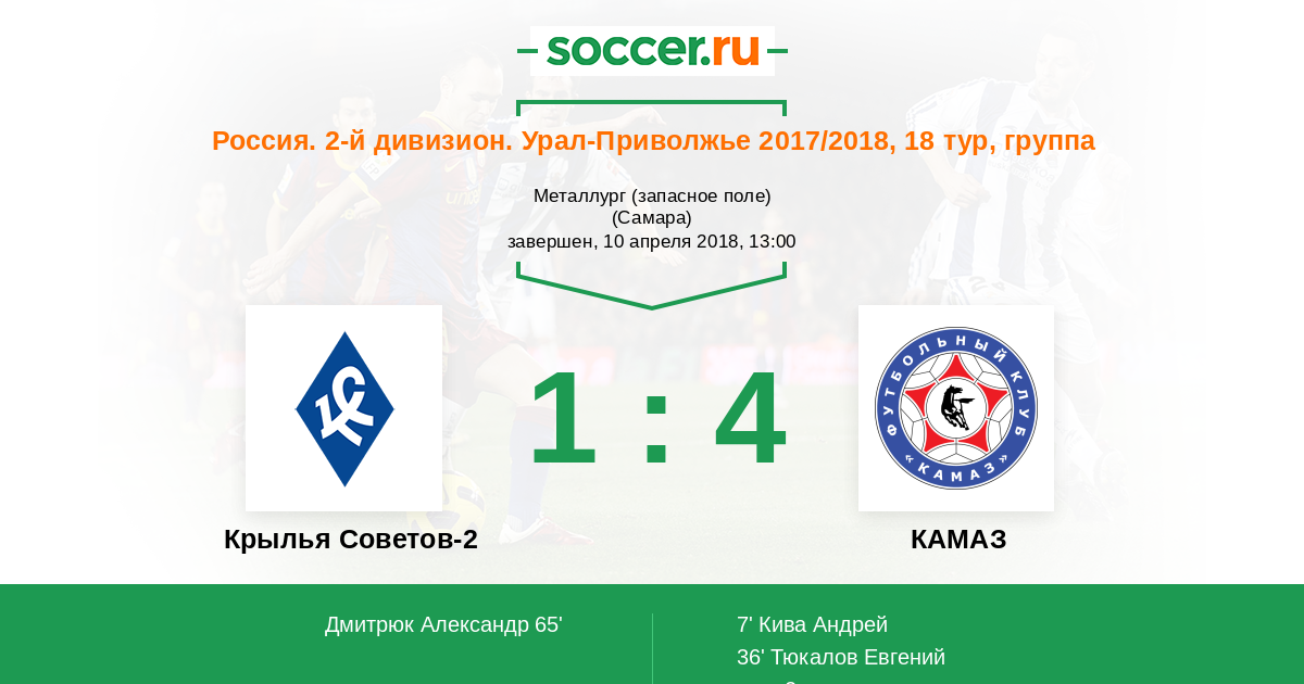 Протокол матча Крылья Советов-2 против КАМАЗ