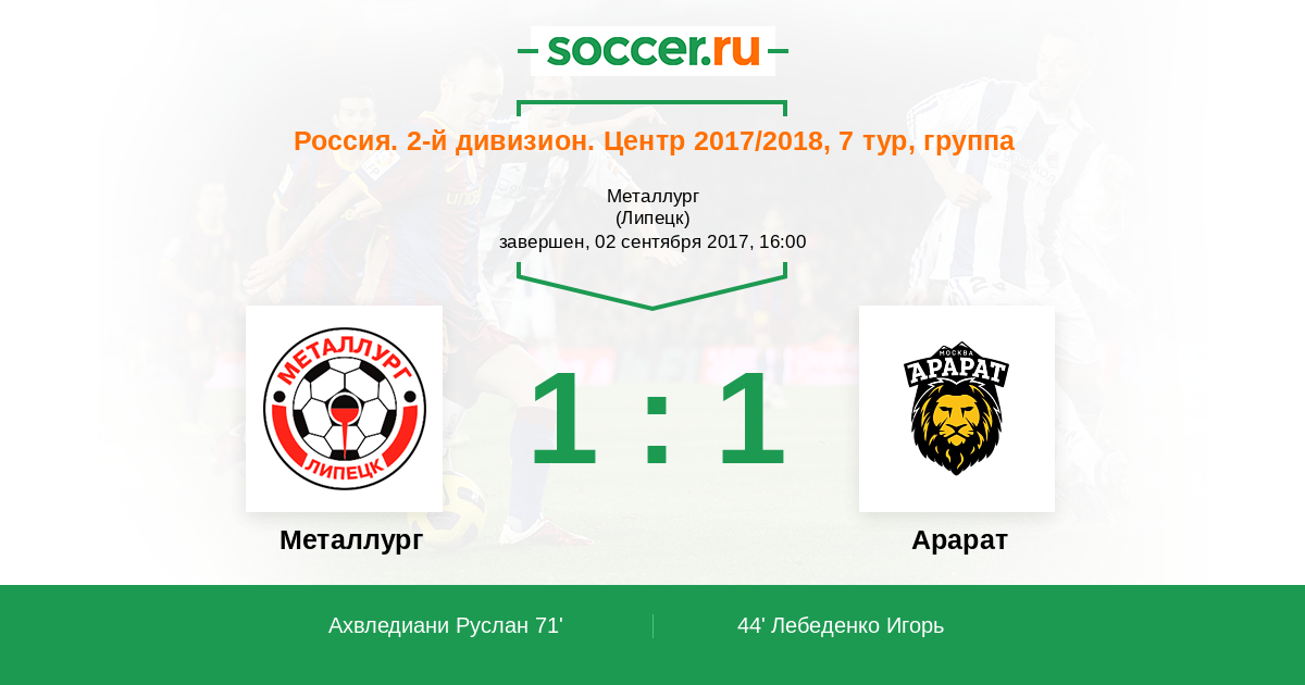 Протокол матча Металлург против Арарат