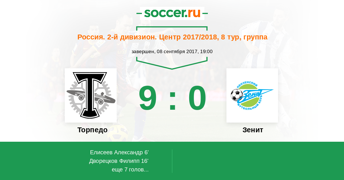 Протокол матча Торпедо против Зенит