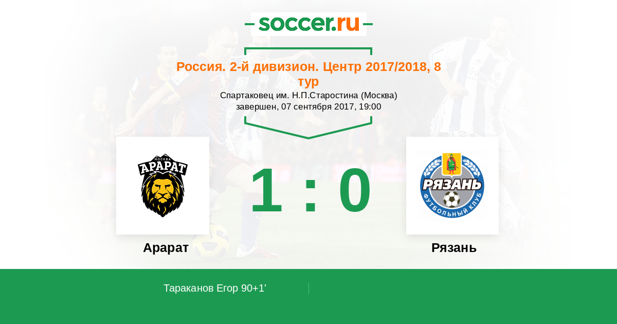 Протокол матча Арарат против Рязань