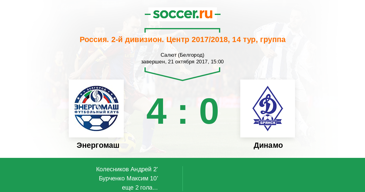 Протокол матча Энергомаш против Динамо Брянск