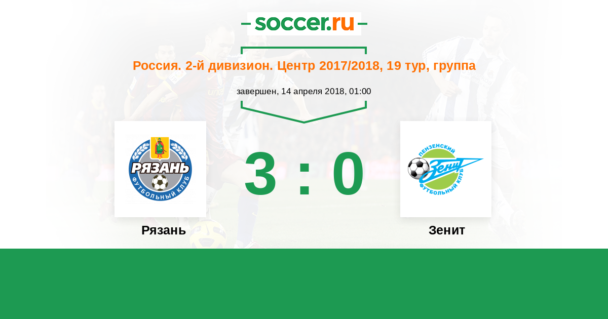 Россия. Вторая лига. Группа 3 28.05.2017 Зенит Логотип футбольный клуб Зенит (Пенза) 2:0 Логотип футбольный клуб Рязань Рязань