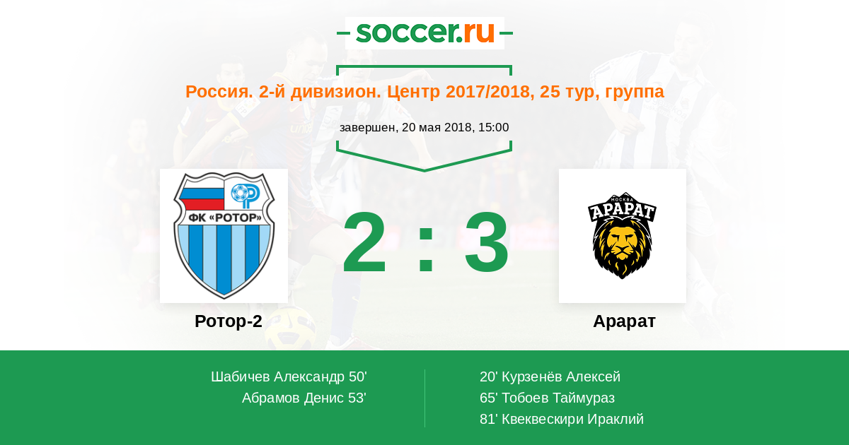 Протокол матча Ротор-2 против Арарат