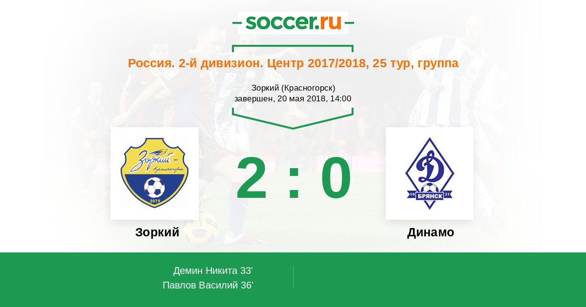 Протокол матча Зоркий против Динамо Брянск