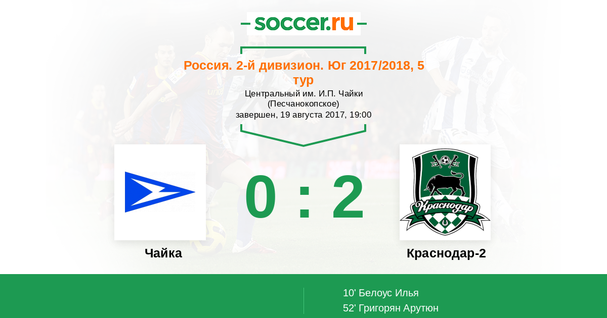 Протокол матча Чайка против Краснодар-2