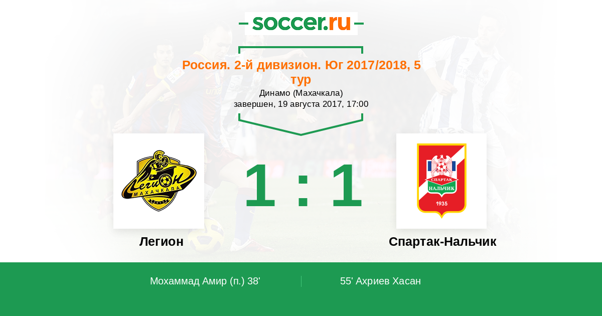 Протокол матча Легион против Спартак-Нальчик
