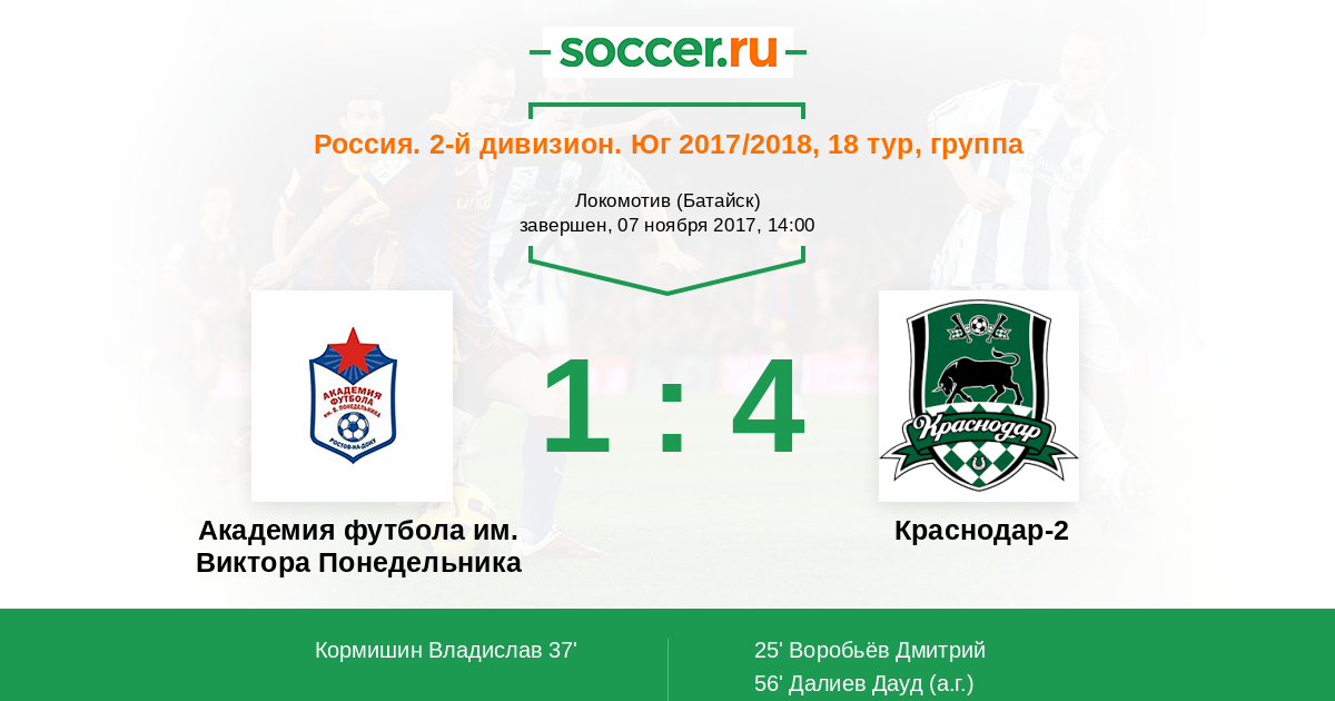 Протокол матча Академия футбола им. Виктора Понедельника против Краснодар-2