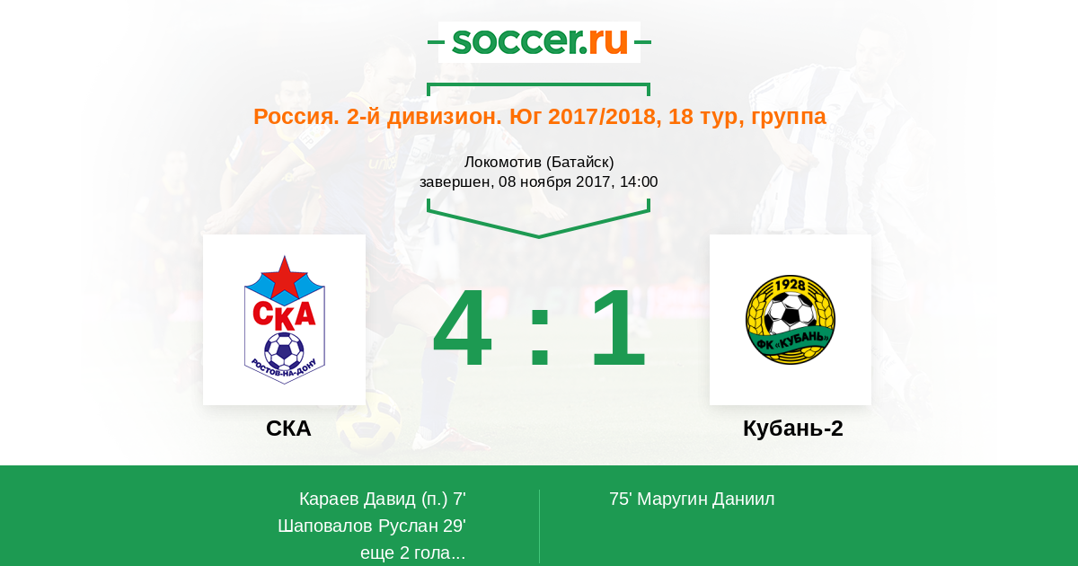 Протокол матча СКА против Кубань-2