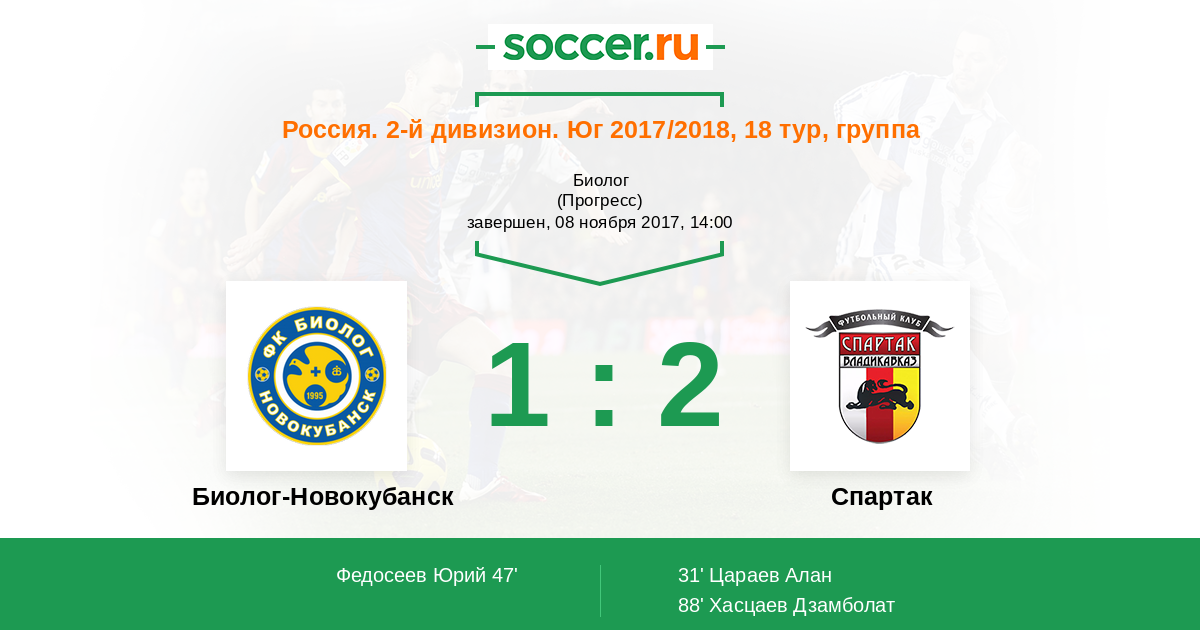 Протокол матча Биолог-Новокубанск против Спартак