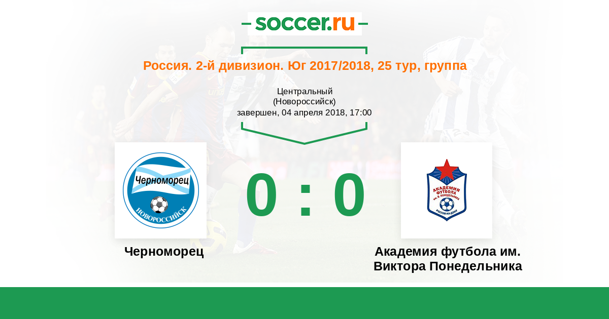 Протокол матча Черноморец против Академия футбола им. Виктора Понедельника