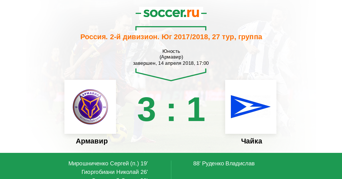 Протокол матча Армавир против Чайка