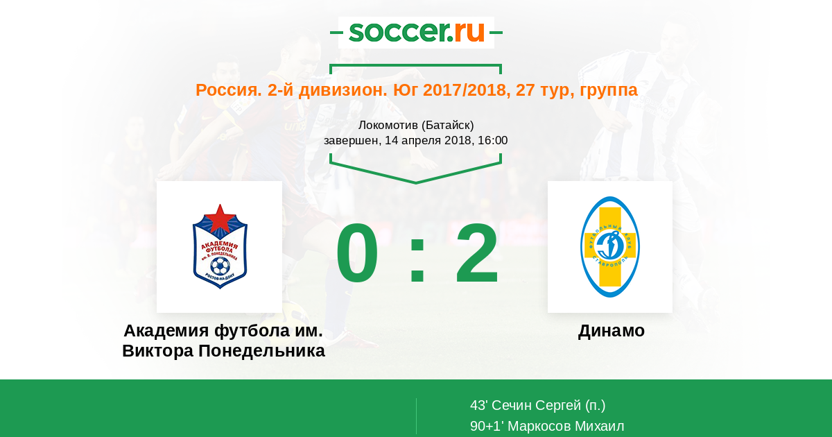 Протокол матча Академия футбола им. Виктора Понедельника против Динамо Ставрополь