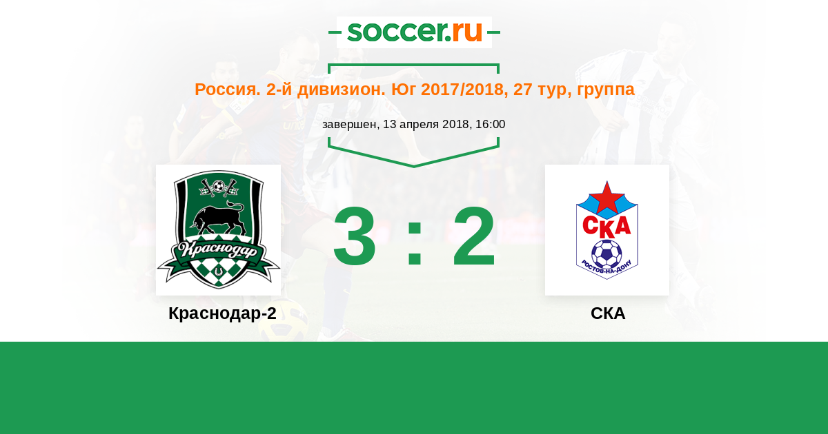 Россия. Вторая лига. Группа 1 30.04.2017 СКА Логотип футбольный клуб СКА (Ростов-на-Дону) 2:3 Логотип футбольный клуб Краснодар-2 Краснодар-2