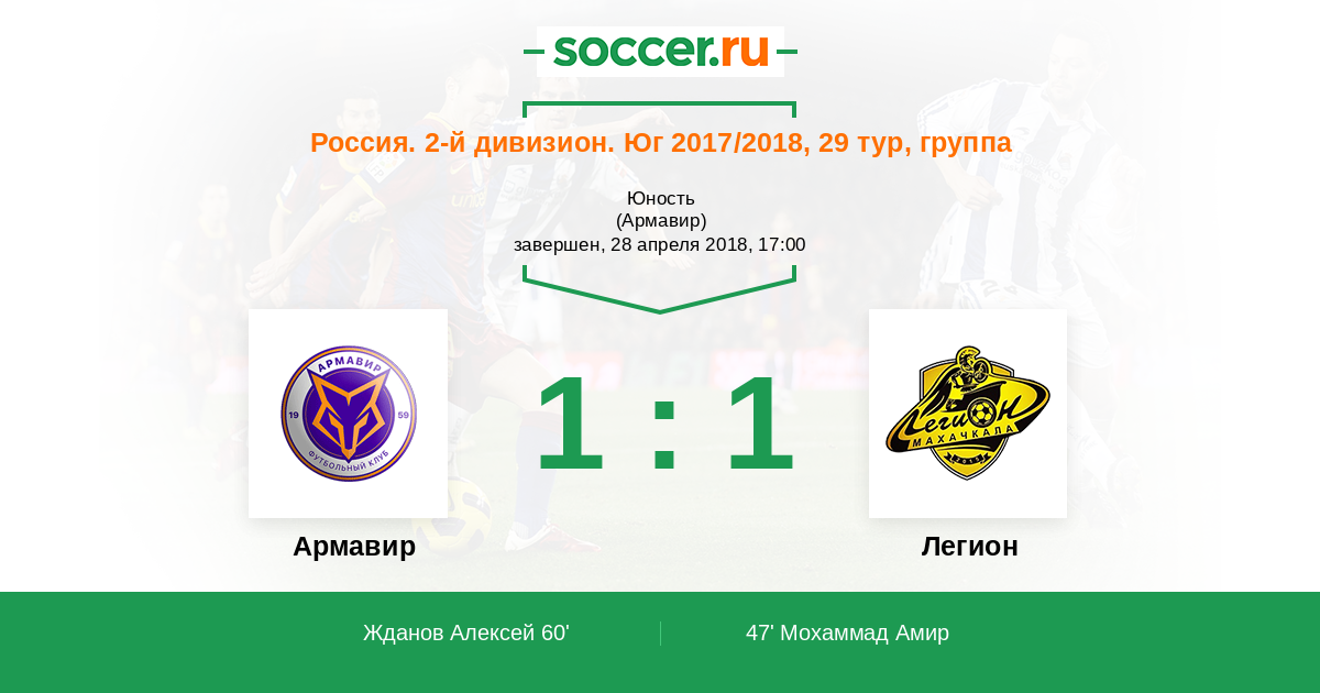 Протокол матча Армавир против Легион